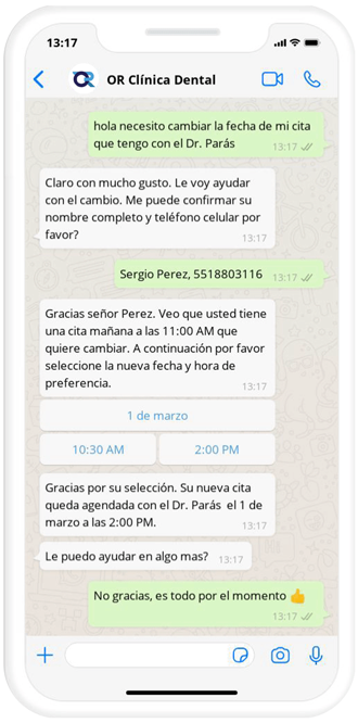 Envía notificaciones automatizadas con opciones de confirmación, y actualización del calendario.